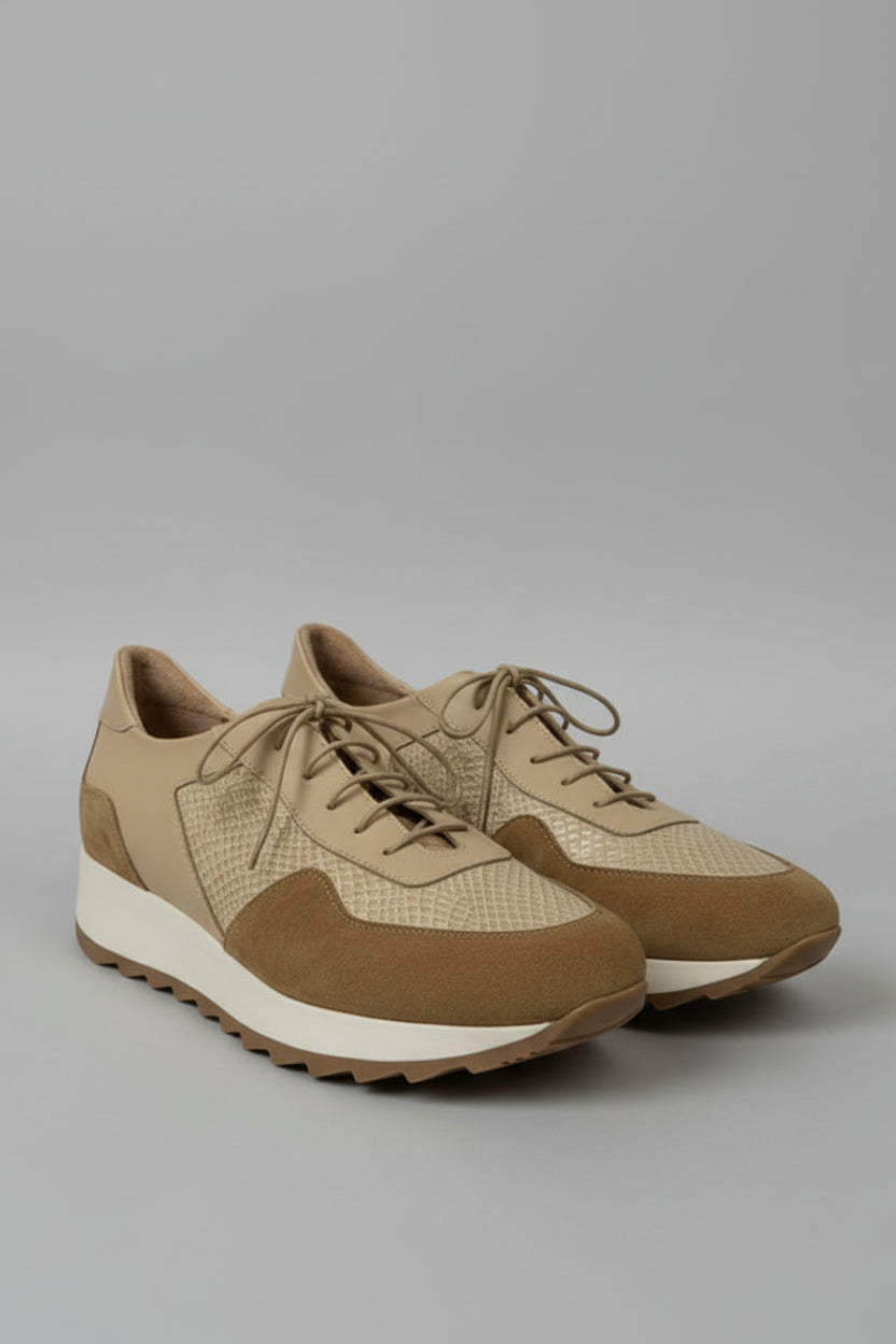 - Tige en cuir lisse (cuir bovin) avec empiècements en cuir suédé et cuir effet croco