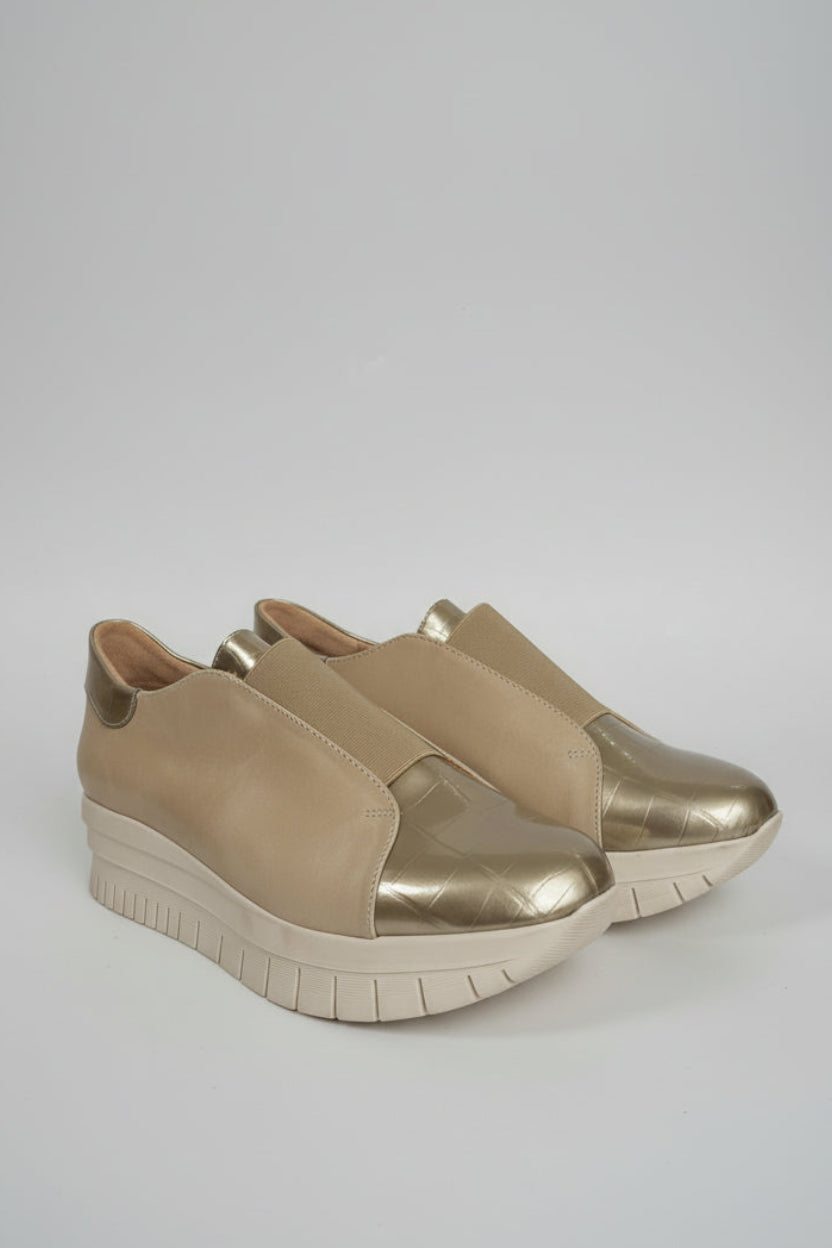 Baskets compensées en cuir -Beige