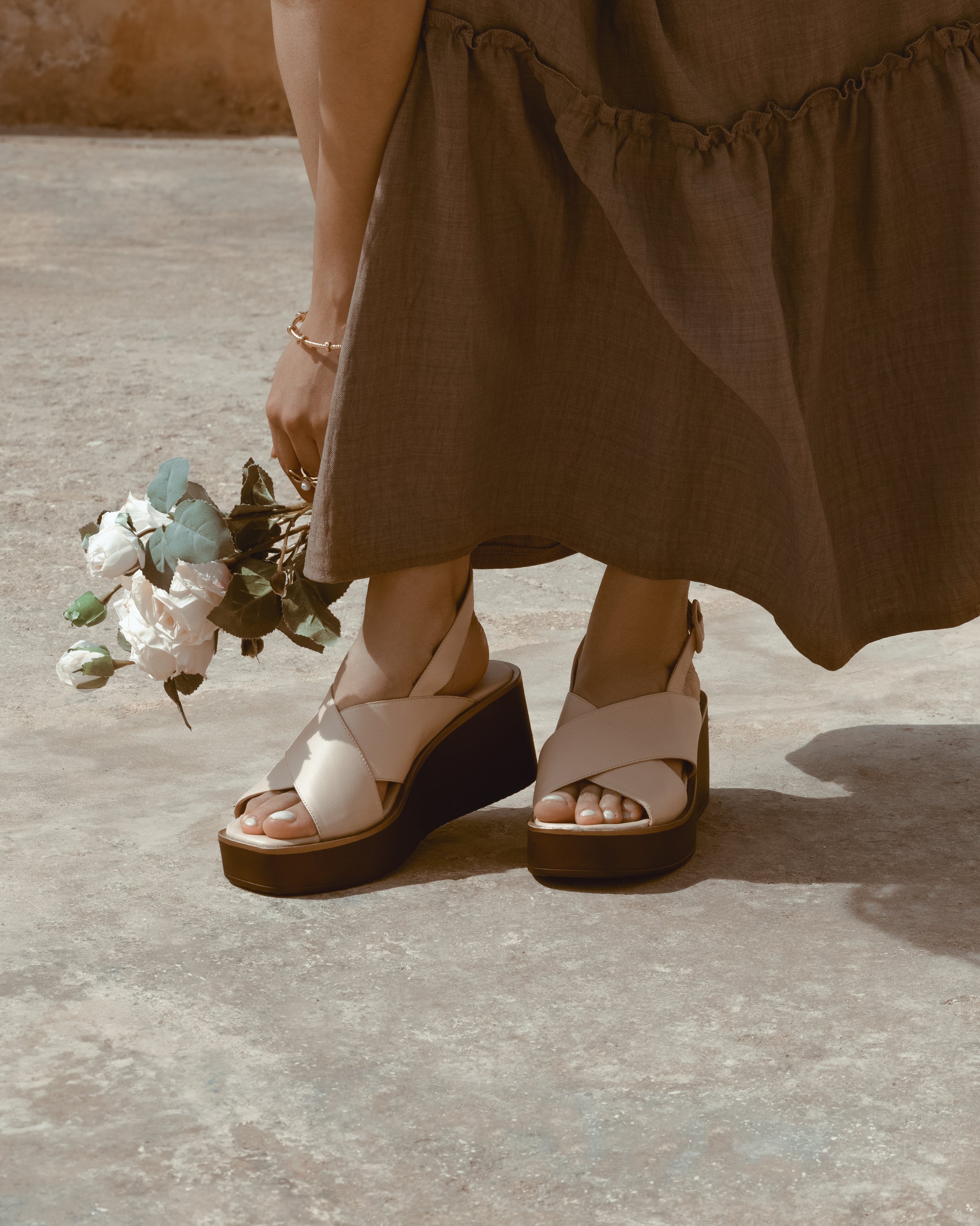 Adoptez un style naturel et raffiné avec ces sandales plates en cuir taupe clair. Leur teinte douce et lumineuse s’associe facilement à toutes vos tenues estivales, tandis que les brides croisées assurent un excellent maintien du pied.
